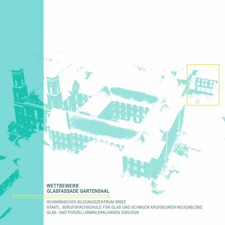 Die Staatliche Berufsfachschule für Glas und Schmuck Kaufbeuren-Neugablonz ist in der Ausbildung all ihrer Gewerke bestrebt, ihren Schülerinnen und Schülern eine berufs- und alltagsnahe Ausbildung zu gewährleisten. Umso mehr hat es die Fachschaft der Glas- und Porzellanmaler unter Leitung von Miriam Tokumaru begrüßt, dass das Schwäbische Bildungszentrum anlässlich seines 45. Firmenjubiläums mit der Idee auf sie zutrat, die Glasfassaden der Neuen Küferei zu gestalten. Der Vision eines weiteren Ortes für Kunst am Bau und der finanziellen Unterstützung des Vereins zur Förderung der Staatl. Berufsfachschule für Glas und Schmuck ist es zu verdanken, dass elf Ideen dazu entwickelt werden konnten. Diese sind bis 22. Mai im Foyer der Neuen Küferei von Kloster Irsee zu sehen – in Form von Musterscheiben, Fotosimulationen und in Ausschnitten aus der Entwurfsphase.